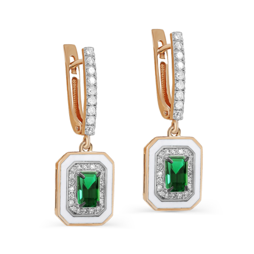 Серьги, комбинированное золото, изумруд, проба 585