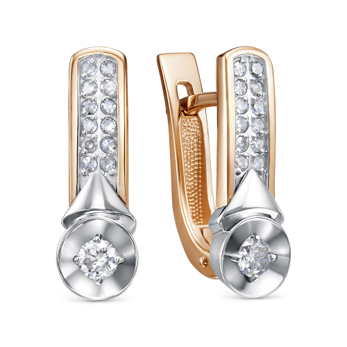 Серьги из комбинированного красного и белого золота, инкрустированные блестящими бриллиантами