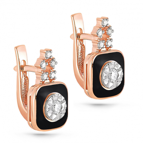 Изысканные серьги, выполненные из благородного сочетания красного и белого золота, украшены сверкающими бриллиантами и элегантной черной эмалью