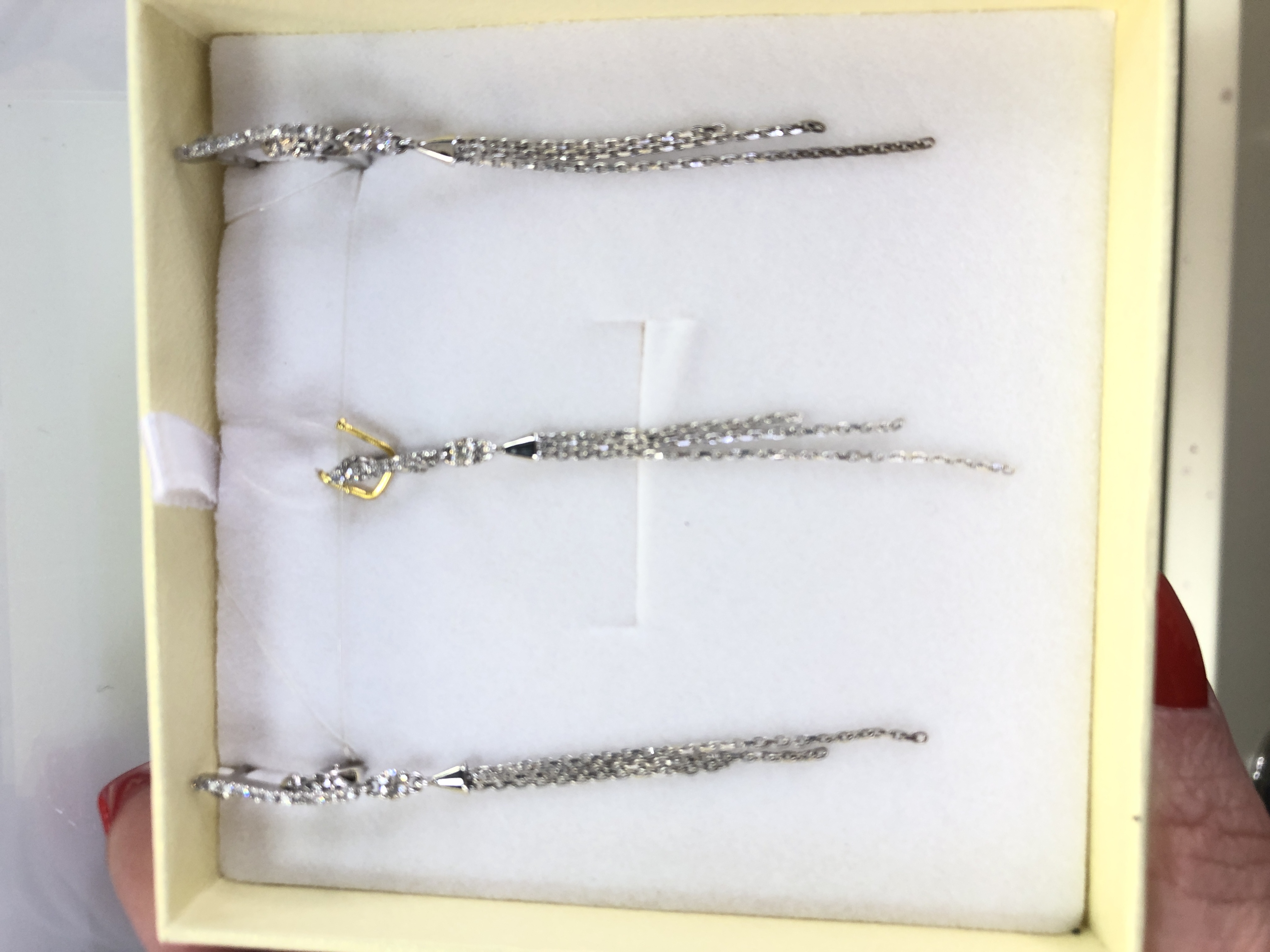 Удлиненные цепочные серьги из белого золота с бриллиантами — это элегантное и современное украшение