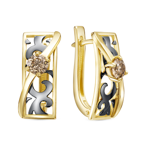 Серьги из желтого золота с черным родиевым покрытием и бриллиантом цвета шампань — это уникальное сочетание классических и современных элементов