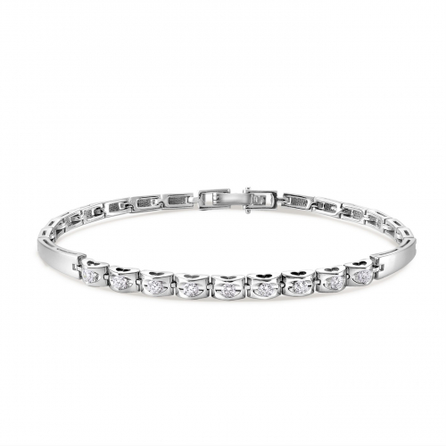 Полужесткий браслет из белого золота, инкрустированный сверкающими бриллиантами, станет изысканным дополнением вашего образа