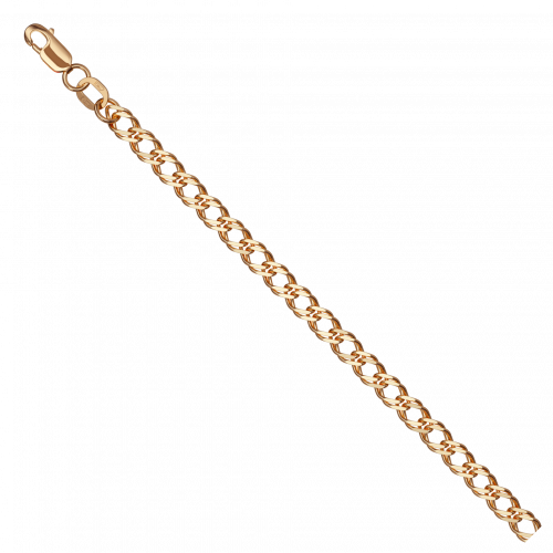 Облегчённая цепь из красного золота 585 пробы с изысканным плетением «Двойной ромб» и роскошной обработкой алмазной грани. Геометрически сложное плетение придает цепи дополнительную выразительность и современный стиль, а уникальный процесс полировки открывает всю палитру цветов и красок благородного металла. Элегантная фактура цепочки долго сохраняет свой начальный праздник сияния и богатства оттенков, легко адаптируется под различные стили и предпочтения владельцев. Чрезвычайно высокая прочность плетения позволяет комфортно носить изделие как отдельно, так и в сочетании с любыми подвесками, становясь достойным акцентом как в образе мужчины, так и женщины. Диаметр проволки 0,60 мм. Представлено брендом КРАСЦВЕТМЕТ. В комплект поставки входит: