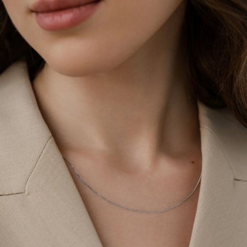 Цепь в подарок ко дню рождения сестры. Она носит всегда серебро, а я решила начать собирать ей базовый гардероб из белого золота, которое сейчас очень модно и актуально. + легко сочетается с серебром, которого у нее много. Цепь панцирного плетения - надежная, долго носится, практичная. Даже если она такая же тонкая, как я приобрела. В качестве уже убедилась, год назад купила себе такую же - до сих пор ношу практически не снимая.