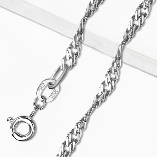 Изящная женская цепь из благородного белого золота 585 пробы, выполненная редким и деликатным плетением «сингапур», подчеркнутым сияющей алмазной гранью