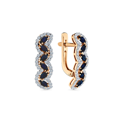 Серьги, комбинированное золото, сапфир, проба 585