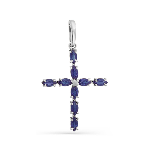 Подвеска из белого золота в форме креста с сапфиром — это элегантное и значимое украшение