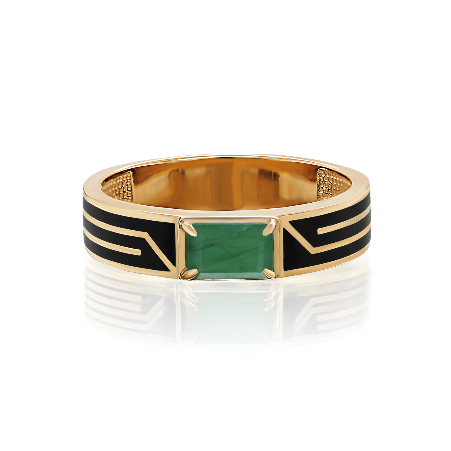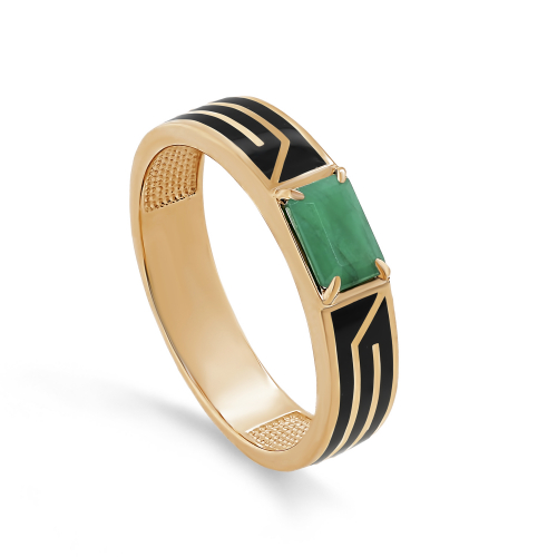 Стильное кольцо с натуральным изумрудом выполнено из красного золота 585 пробы