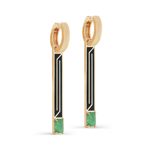 Стильные удлинённые серьги с натуральными изумрудами выполнены из красного золота 585 пробы. Ювелирная эмаль глубокого чёрного цвета подчёркивает насыщенный цвет изумрудов. Таккие серьги будут привлекать внимание и подчеркивать красоту своей обладательницы. Тип замка - английский, самый надежный и удобный. Изделие представлено брендом KABAROVSKY. Средняя характеристика камней: 2 Изумруд нат. Октагон 6х4 3/3 1.174ct.