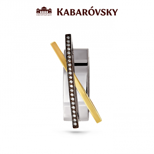 Стильная крупная подвеска от Ювелирного Дома «Kabarovsky», выполненна в стиле геометрия, в сочетании белого и желтого золота 585 пробы с бриллиантами.