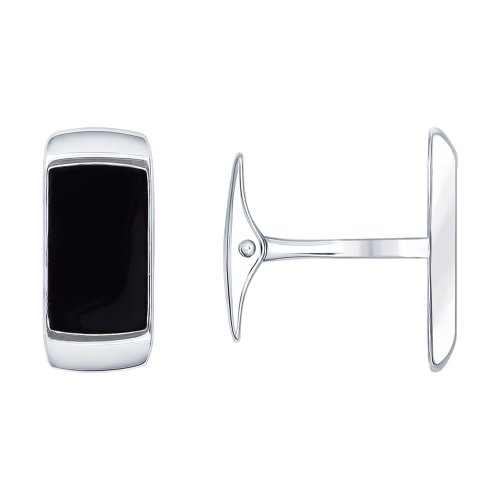 Мужские запонки минималистичного дизайна исполнены в серебре 925 пробы. Вставки черной эмали делают запонки яркими и контрастными.