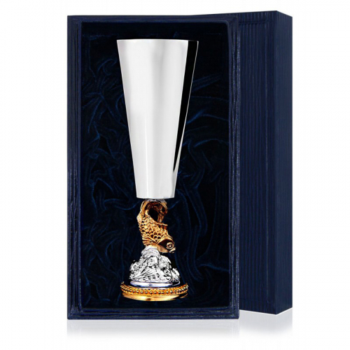Рюмка "Золотая рыбка" выполнена из серебра 925 пробы и украшена позолоченной рыбкой