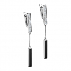 Стильные серьги, выполнены из серебра 925 пробы, украшены эмалью черного цвета и искрящейся россыпью фианитов.