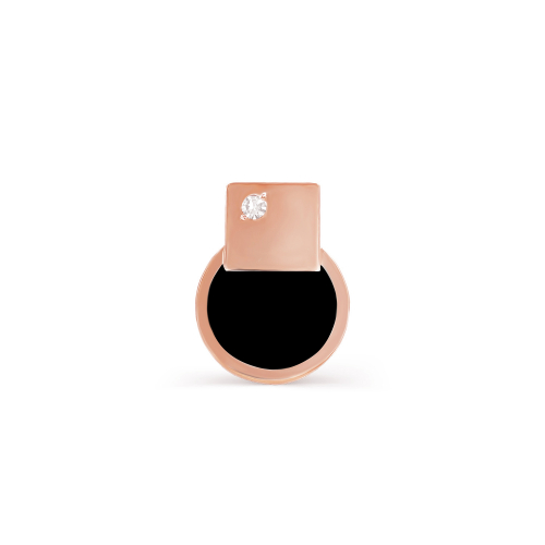 Лаконичная подвеска круглой формы с чёрным агатом и бриллиантом, выполнена из красного золота 585 пробы