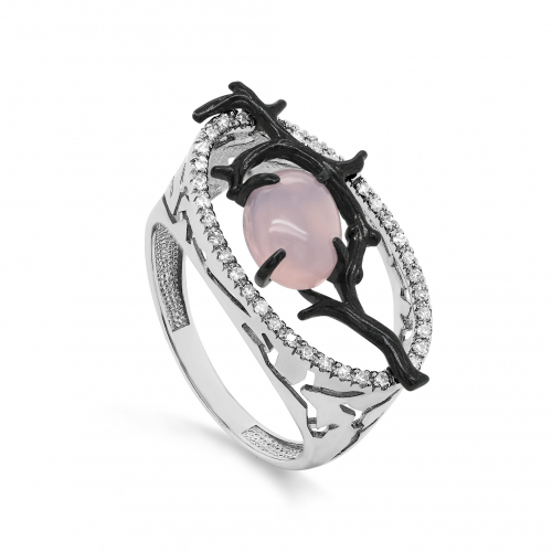 Серебряное фэнтезийное кольцо с ониксом и фианитами — это магическое украшение, где мрачная красота черного оникса гармонирует с искрами фианитов