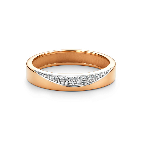 Кольцо из красного и белого золота — это гармоничное переплетение двух благородных металлов, украшенное дорожкой бриллиантов