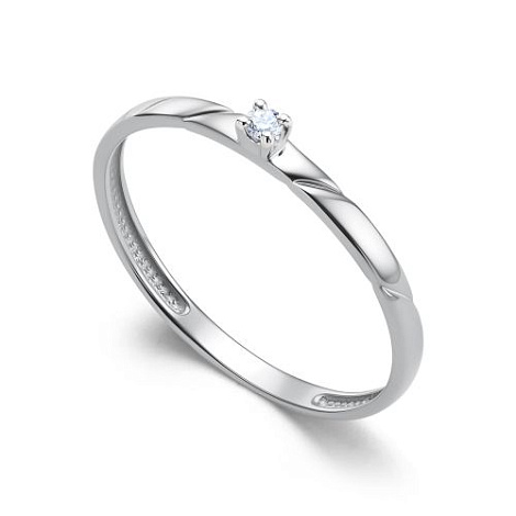 Кольцо со сверкающим бриллиантом выполнено из белого золота 585 пробы