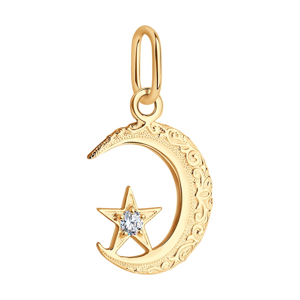 Мусульманская подвеска выполнена из красного золота 585 пробы и украшены фианитом. Изделие представлено брендом: SOKOLOV. Средняя характеристика камней: 1 Фианит. В комплект поставки входит: