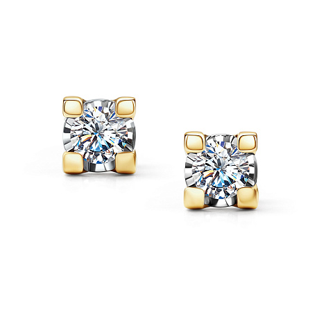 Изящные серьги-пусеты выполнены из гармоничного сочетания жёлтого и белого золота, представляя собой идеальное сочетание классической утончённости и современного шарма