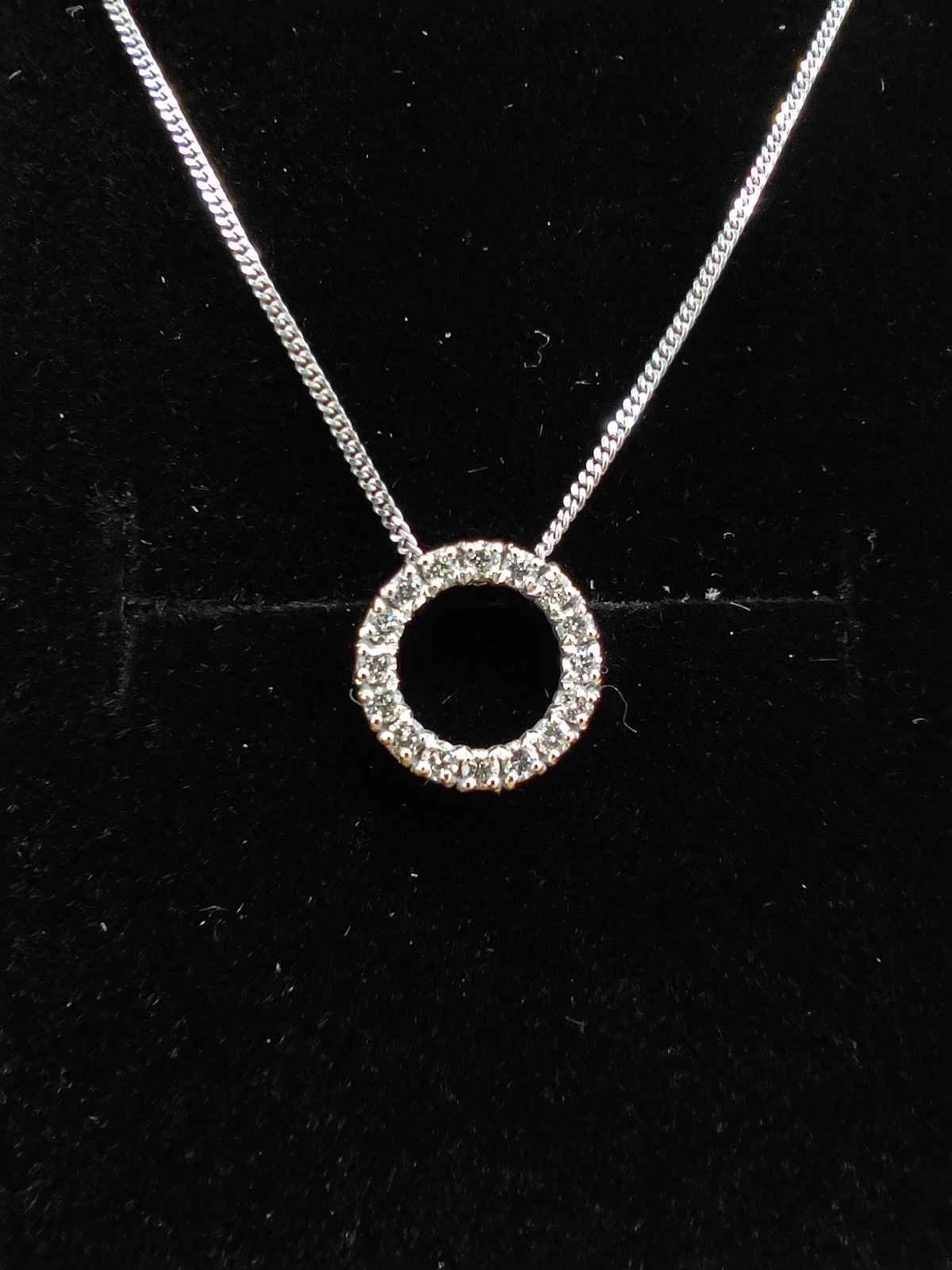 Роскошное цепочное колье, выполнено из белого золота 585 пробы, украшено великолепными сияющими бриллиантами