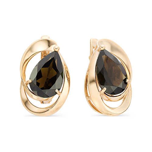 Серьги из красного золота 585 пробы с раух-топазами. Эта модель статусная и лаконичная за счет вставки огранки "Груша".
