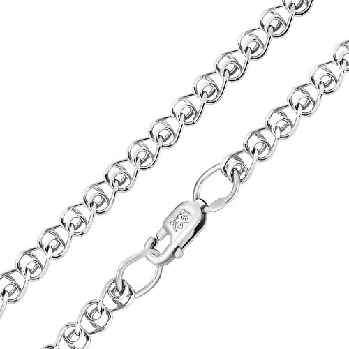 Полновесная цепь с красивым плетением выполнена из родированного серебра 925 пробы