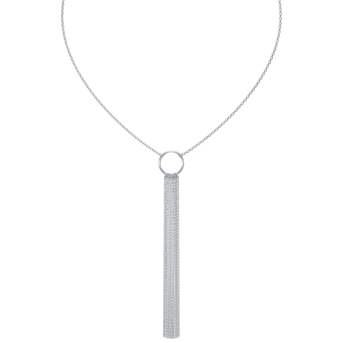 Стильное цепочное колье с подвесной частью, выполнено из родированного серебра 925 пробы