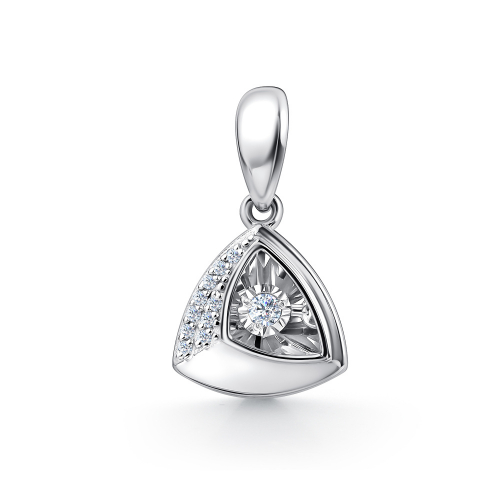 Яркая подвеска в виде геометрической фигуры, выполнена из белого золота 585 пробы, украшена сверкающими бриллиантами