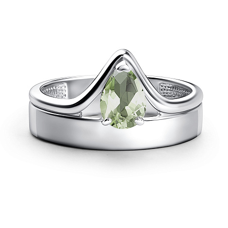 Изящное кольцо, выполненное из благородного серебра, украшено сияющим празиолитом, создающим атмосферу таинственности и загадочности. Этот редкий камень приносит своему владельцу гармонию и внутреннее спокойствие, подчеркивая утонченный вкус владельца. Кольцо станет прекрасным дополнением любого образа, выделяя вашу уникальность и изысканность. Представлено брендом АЛЬКОР. Вставки: 1 Празиолит Зеленый Груша 0,585 В комплект поставки входит: