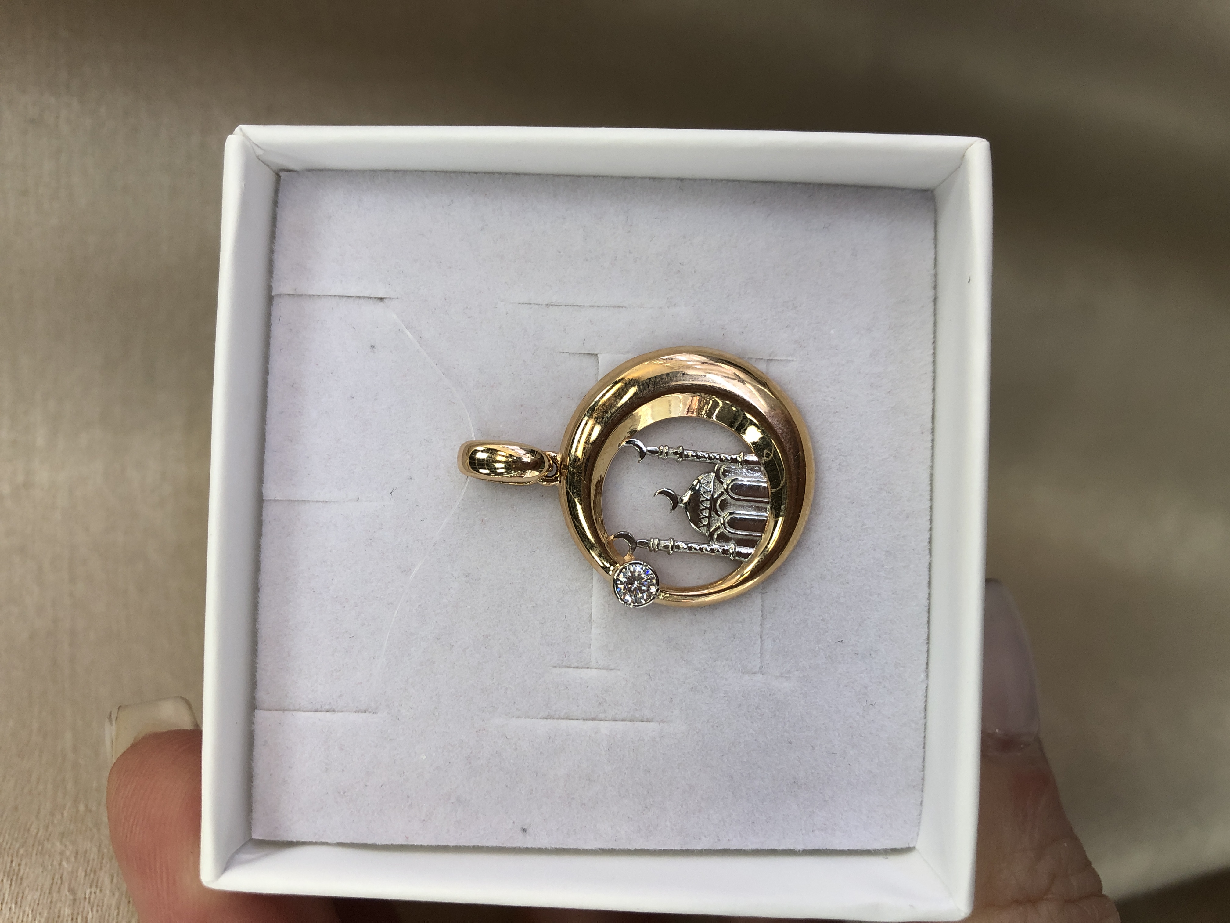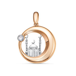 Подвеска выполнена в сочетании красного и белого золота 585 пробы, украшена сияющим фианитом