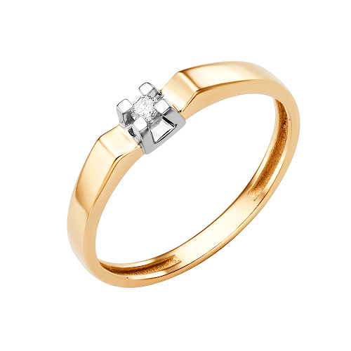 Кольцо, комбинированное золото, бриллиант, проба 585