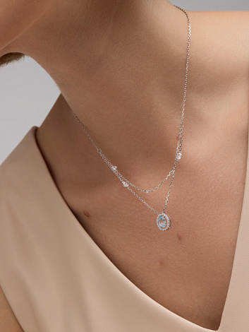 Нежное серебряное колье с голубым топазом Sky и сверкающими фианитами очарует своей легкостью и элегантностью
