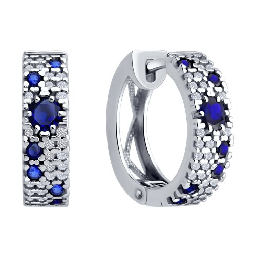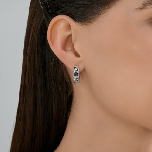 Серебряные серьги с россыпью синего корунда и фианитов — изящное украшение, демонстрирующее тонкость дизайна и игру цветов