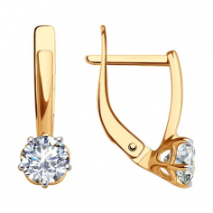 Серьги классического дизайна с фианитами, выполнены из красного золота 585 пробы. Именно такие украшения универсально подходят к какому угодно образу и способны изящно завершить любой наряд. Тип замка - английский, самый надежный и удобный. Вставки: 2 × Фианит недраг Бесцветный 5.00 ~1,707 кар В комплект поставки входит:
