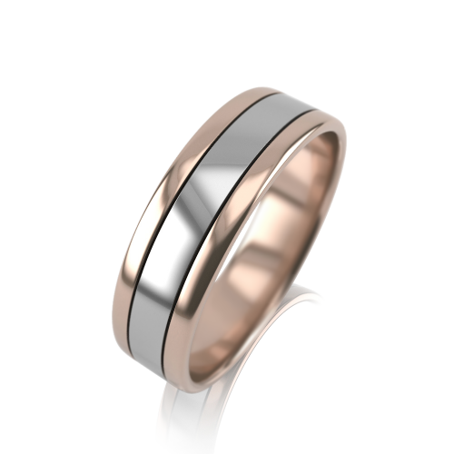 Полновесное обручальное кольцо, выполненное в сочетании красного и белого золота 585 пробы. Форма кольца "шайба", модель выполнена из золоте 2-х цветов, основание из красного золота, середина из белого. Ширина кольца 5 мм. Представлено брендом ТИМОФЕЕВЪ. В комплект поставки входит: