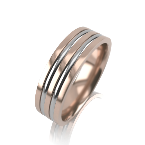 Широкое двухсплавное обручальное кольцо в сочетании красного и белого золота 585 пробы, форма профиля прямая - "шайба"