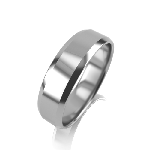 Полновесное обручальное кольцо с прямым профилем "шайба", выполнено из белого золота 585 пробы, особую оригинальность кольцу придают скошенные края в сочетании с идеально гладкой поверхностью кольца