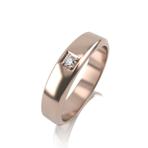 Полновесное обручальное кольцо с прямым профилем "шайба", выполнено из красного золота 585 пробы, особую оригинальность кольцу придают ускрящиеся скошенные края в сочетании с идеально гладкой поверхностью кольца. В кольце имеется вставка из одного бриллианта, который придает нежный, искрящийся блеск. Камень не выступает относительно поверхности кольца, за счет глухой закрепки, она надежно удерживает бриллиант. Кольцо обладает специальной системой посадки «Comfort fit», обеспечивающей идеальную посадку на пальце, исключающую дискомфорт и чувство сдавливания даже при длительном ношении. Представлено брендом ТИМОФЕЕВЪ. В комплект поставки входит: