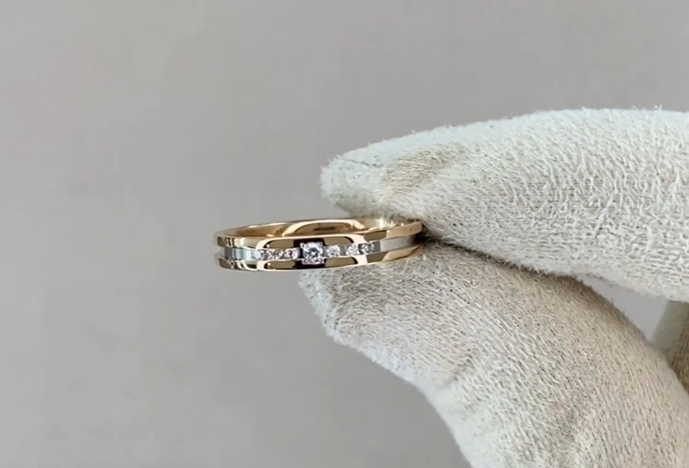 Кольцо обручальное, комбинированное золото, без камней, проба 585