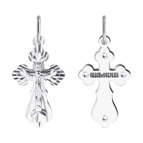 Православный крест, в котором исполнены все каноны Православной Церкви, выполнен из белого золота 585 пробы с алмазной гравировкой