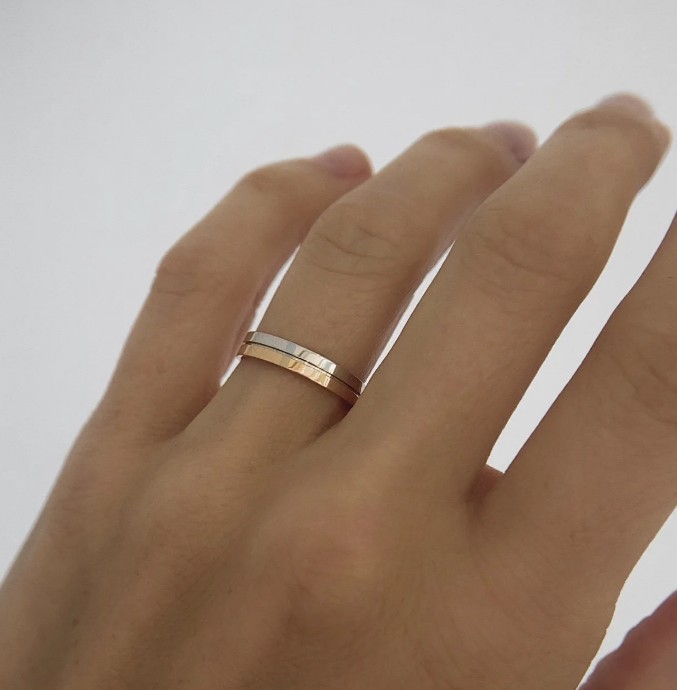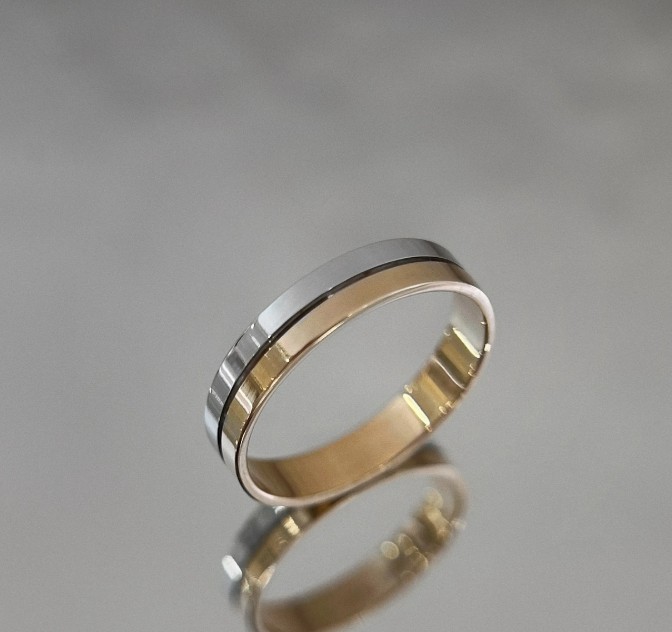 Стильное обручальное кольцо, изготовленное из благородного сочетания красного и белого золота 585 пробы, олицетворяет гармонию традиций и современности