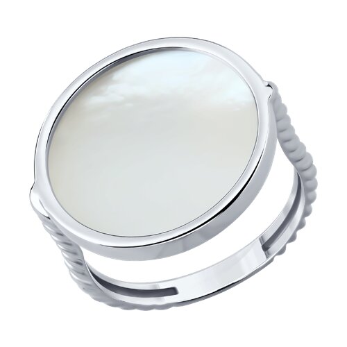 Серебряное кольцо, инкрустированное переливающимся перламутром, словно капелька морской волны, застывшая на пальце. Элегантное украшение добавит образу таинственной загадочности и нежности, мгновенно приковывая внимание окружающих. Великолепный выбор для поклонниц природных материалов и тонкого вкуса. Представлено брендом SOKOLOV. Вставки: 1 × Перламутр недраг Белый Круг 16.50 ~3,520 кар В комплект поставки входит: