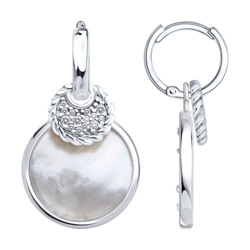Очаровательные серебряные серьги с роскошным перламутром и сияющими фианитами привлекают взгляд своим нежным блеском и великолепием