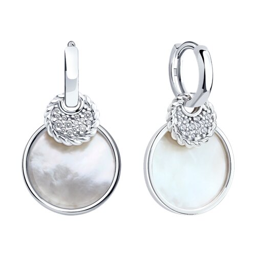Очаровательные серебряные серьги с роскошным перламутром и сияющими фианитами привлекают взгляд своим нежным блеском и великолепием. Перламутр создаёт впечатление мягкого морского света, отражённого в каплях воды, а хрустальные фианиты добавляют звёздам яркости и искристости. Утончающее украшение легко впишется в ваш образ, наполнив его красотой и изяществом. Представлено брендом SOKOLOV. Вставки: 1 × Перламутр недраг Белый Круг 16.50 ~3,520 кар В комплект поставки входит: