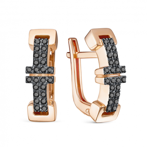 Стильные серьги выполнены из красного и белого золота 585 пробы, украшенные черными сверкающими фианитами