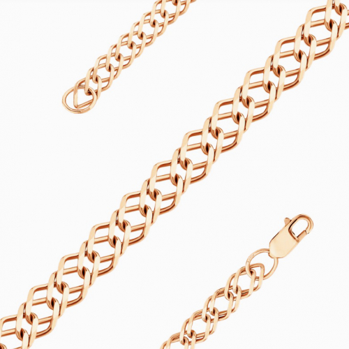 Изящность и мощь соединяются в одной цепочке: крупная полновесная цепь из драгоценного красного золота 585 пробы, украшенная великолепным плетением «двойной ромб», сверкает своей уникальной алмазной гранью. Это украшение станет ярким акцентом вашего образа, подчеркнув элегантность и уверенность своего обладателя. Подходит как мужчинам, так и женщинам. Диаметр проволки 0,80 мм. Представлено брендом КРАСЦВЕТМЕТ.