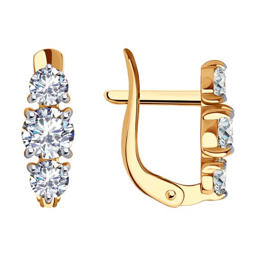 Нежные серьги, украшенные сверкающими фианитами, выполнены из красного золота 585 пробы. Тип замка - английский, самый надежный и удобный. Изделие представлено брендом SOKOLOV. Вставки: 4 × Фианит недраг Бесцветный 3.00 ~0,798 кар