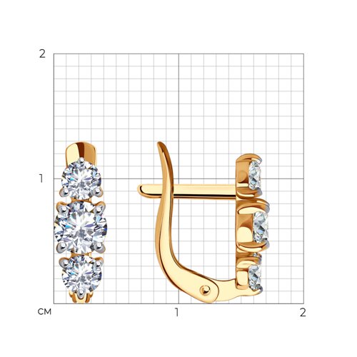 Нежные серьги, украшенные сверкающими фианитами, выполнены из красного золота 585 пробы