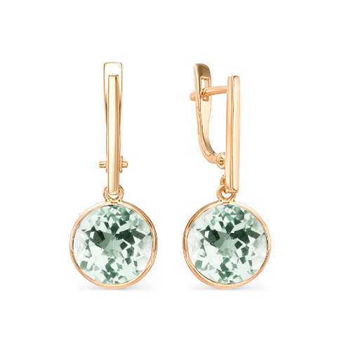 Стильные и лаконичные серьги с празиолитом выполнены из красного золота 585 пробы