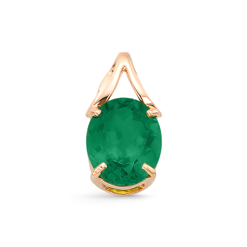 Декоративная классическая подвеска с зелеными агатами в виде бегунка выполнена из красного золота 585 пробы